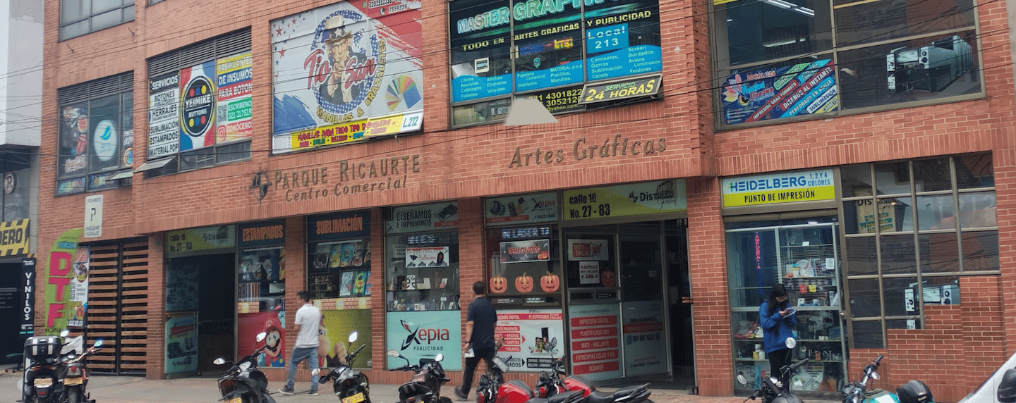 Descubre Parque Ricaurte Artes gráficas, el centro comercial ideal para publicistas, empresarios y creativos. Encuentra en un solo lugar todo lo que necesitas en impresión publicitaria: artículos P.O.P., corte láser, sublimación, estampados, diseño, avisos en acrílico 3D y más. ¡Ven y potencia tu marca con calidad, innovación y atención personalizada!